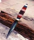 Knife: "Dirk" Material: Multi-Layer Corian Blade: Double-Edge 440C Guard: Filed Brass