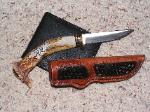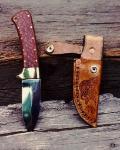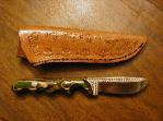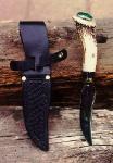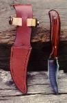 "The Chief" Material: Scrimshaw Mammoth Ivory Blade: ATS 34 Guard: Nickel Leather Sheath w/Concho